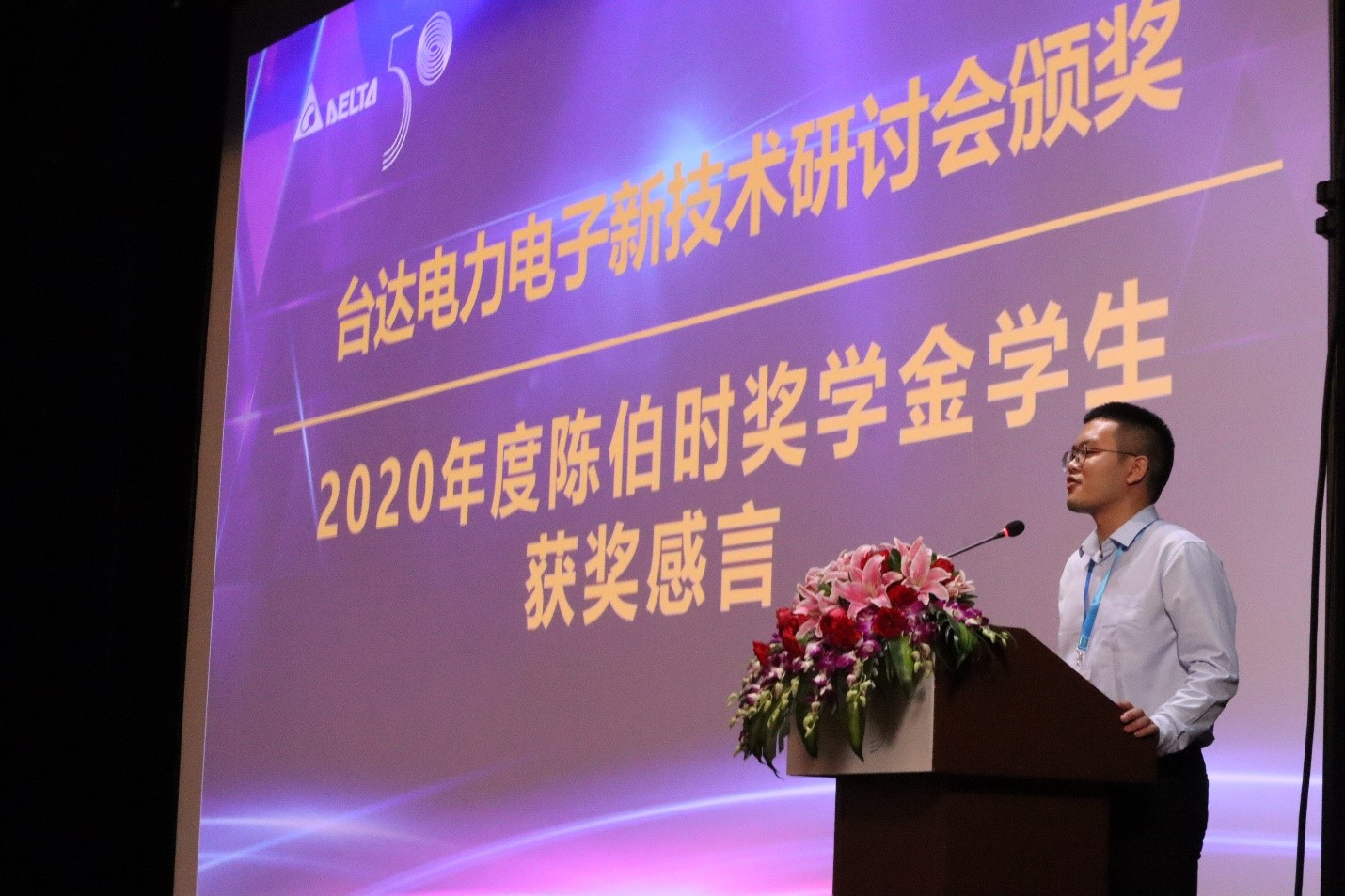 本次研讨会上,汪飞教授作为2019年度“中达青年学者”奖获得者作了题为《基于能量枢纽的区域综合能源系统分布式分层优化》的学术成果报告。杨影副教授作了2018年度台达电力电子科教发展计划资助项目(青年项目)结题汇报并获得评委好评。李玉菲和施天灵同学分别获得2019年度和2020年度陈伯时奖学金并在庆典上发表获奖感言。