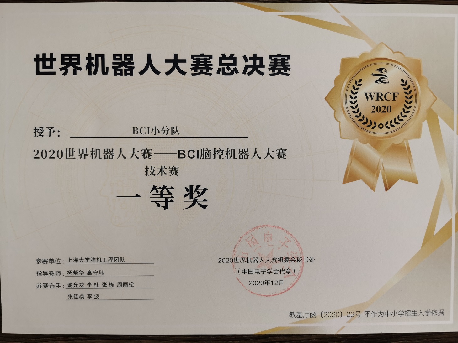 作为运动想象赛题的出题单位,永利集团脑机工程研究中心承担了技术赛比赛系统框架的开发任务,并荣获2020世界机器人大赛——BCI脑控机器人大赛特殊贡献奖及技术赛一等奖。