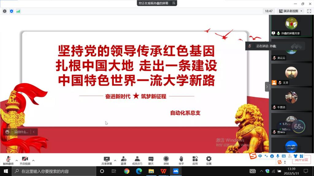 为进一步加强教职工政治理论学习,提升教职工和系总支全体党员的政治思想素质和政策理论水平,自动化系于5月31日下午组织开展了年度第五次政治理论集体学习,自动化系全体教职工和总支全体师生党员通过腾讯会议的形式线上参与学习和讨论。