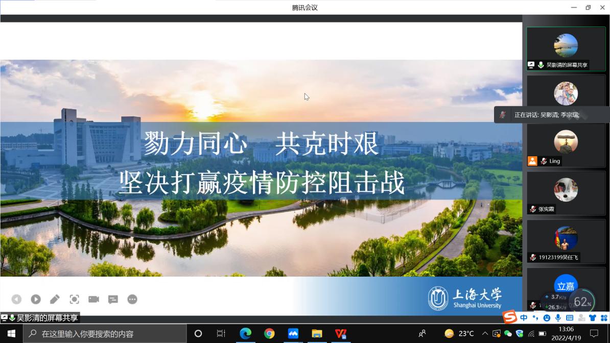 自动化系于4.19下午组织开展年度第四次政治理论集体学习,自动化系办公室主任、办公室支部书记吴影清老师结合目前疫情防疫工作,做了题为《勠力同心、共克时艰,坚决打赢疫情防控阻击战》的专题报告。本次集体学习采用腾讯会议的形式,自动化系全体教职工和总支全体师生党员线上参与学习和讨论。
