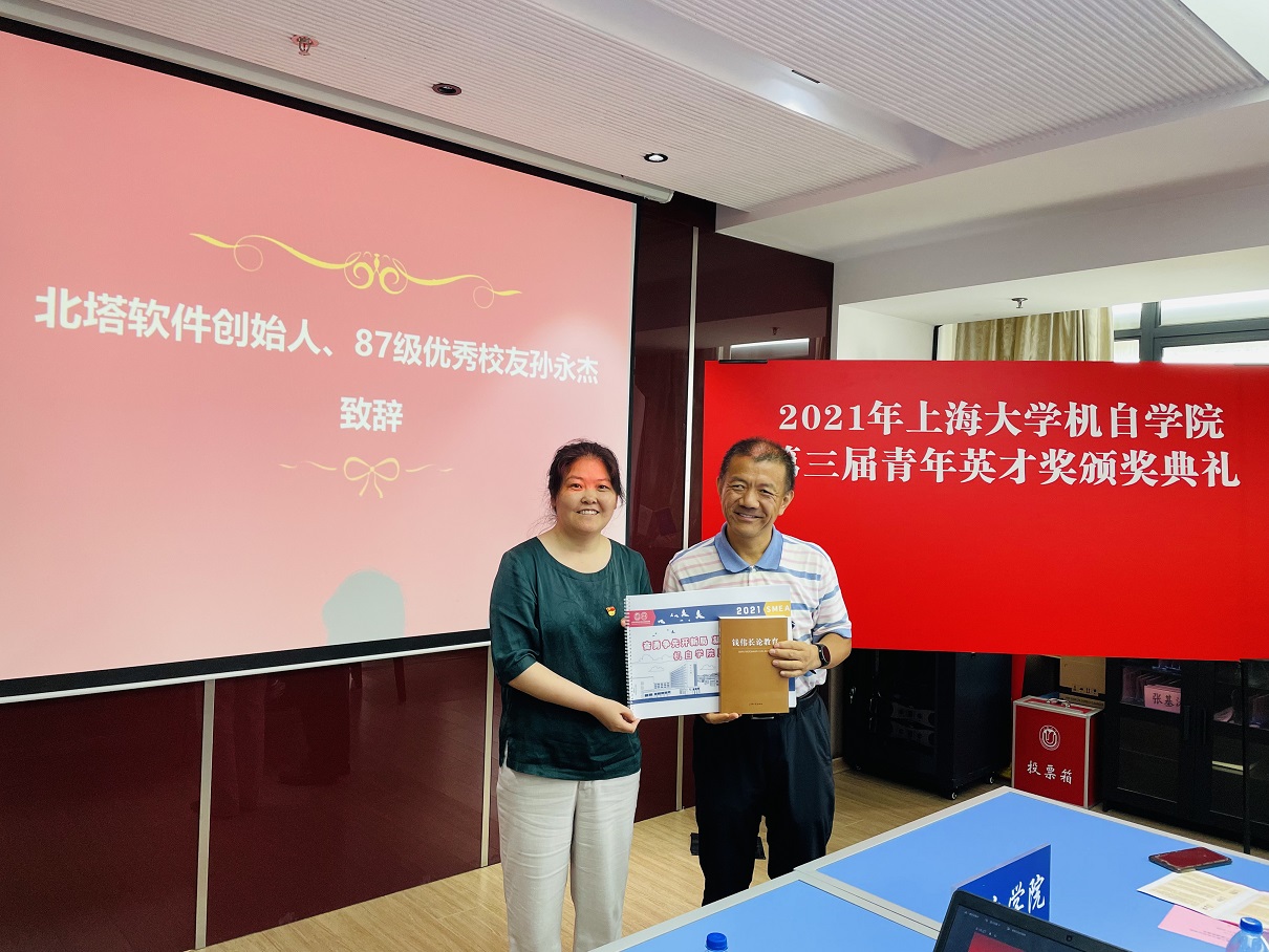 在听过青年教师的分享后,孙永杰员工发言。他表示母校近些年发展很快,各位青年教师的研究都能很好的切合国家重大战略需求。同时,他建议大家在做科研的同时要培养自己的兴趣爱好,并且在员工的培养过程中要特别注重员工品德与学习方法的培养。在孙永杰员工致辞后,于瀛洁书记代表公司向孙员工赠送了《钱伟长论教育》以及《3044永利集团风采展》。