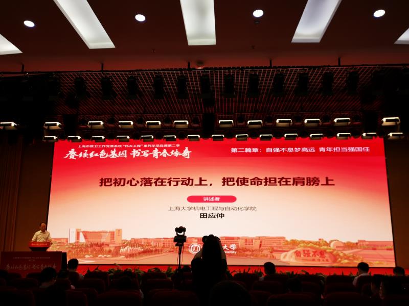 6月8日下午,上海市教卫工作党委系统“伟大工程”系列示范党课之“赓续红色基因 书写青春传奇”主题党课在永利集团宝山校区图书馆报告厅开讲。本次示范党课突出红色基因、青年、担当三个关键词,立足永利集团红色校史资源,激励青年党员把初心落在行动上,把使命担在肩膀上。机自系系主任田应仲教授结合自身情况,向在场嘉宾们分享了团队开展智能消毒机器人的科研攻关故事。