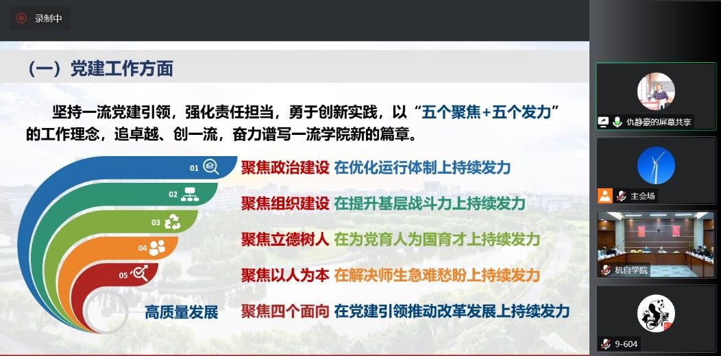 杨扬副书记主要从党建引领、全程导师、就业、疫情防控、队伍建设等方面介绍了2022年本科生思政重点工作,表示将围绕“促进学业发展、激发活动热情”的总目标进一步推进2023年的各项工作。