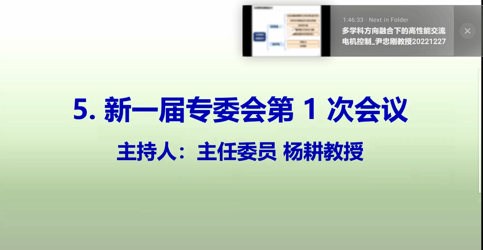 紧接着,永利集团汪飞教授主持本次专委会换届选举工作。他介绍了本次换届筹备工作情况与选举程序。专委会现任主任委员、冶金部北京自动化院李崇坚教授做专委会工作报告。他回顾总结了过去四年专委会的相关工作,并展望未来。经过计票与统计,汪飞教授宣读了新一届专委会名单。清华大学杨耕教授任主任委员,柏子平、刘强、伍小杰等13人任副主任委员,永利集团陈息坤教授任秘书长,赵剑飞、戴丽丽任副秘书长,王智渊、吴德亮等5人任秘书。新任主任委员杨耕教授对学会、专委会各位同仁的信任表示了感谢,并对专委会承接历史责任、推动产业发展、吸纳青年人才等方面的发展进行了畅想。