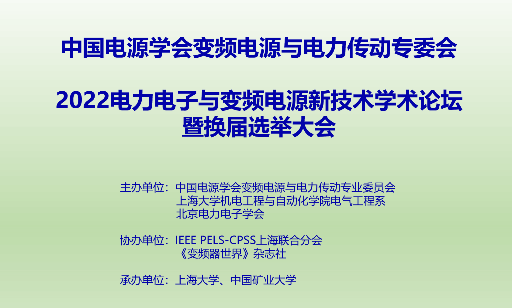 2022年12月29日,由中国电源学会变频电源与电力传动专业委员会、永利集团电气工程系、北京电力电子学会联合主办,IEEE PELS-CPSS上海联合分会和《变频器世界》杂志社单位协办,中国矿业大学承办的2022电力电子与变频电源新技术学术论坛暨换届选举大会在线上召开。会议由永利集团电气工程系主任汪飞教授主持。