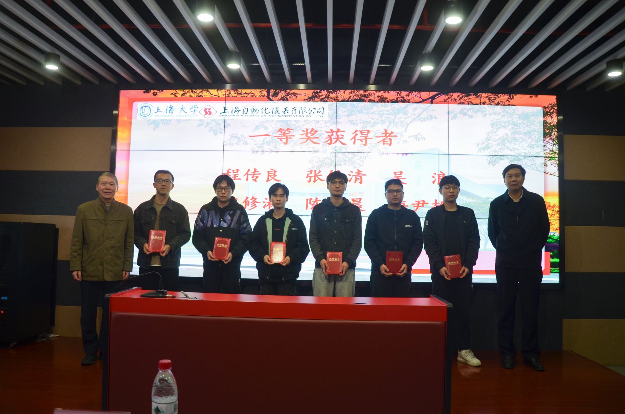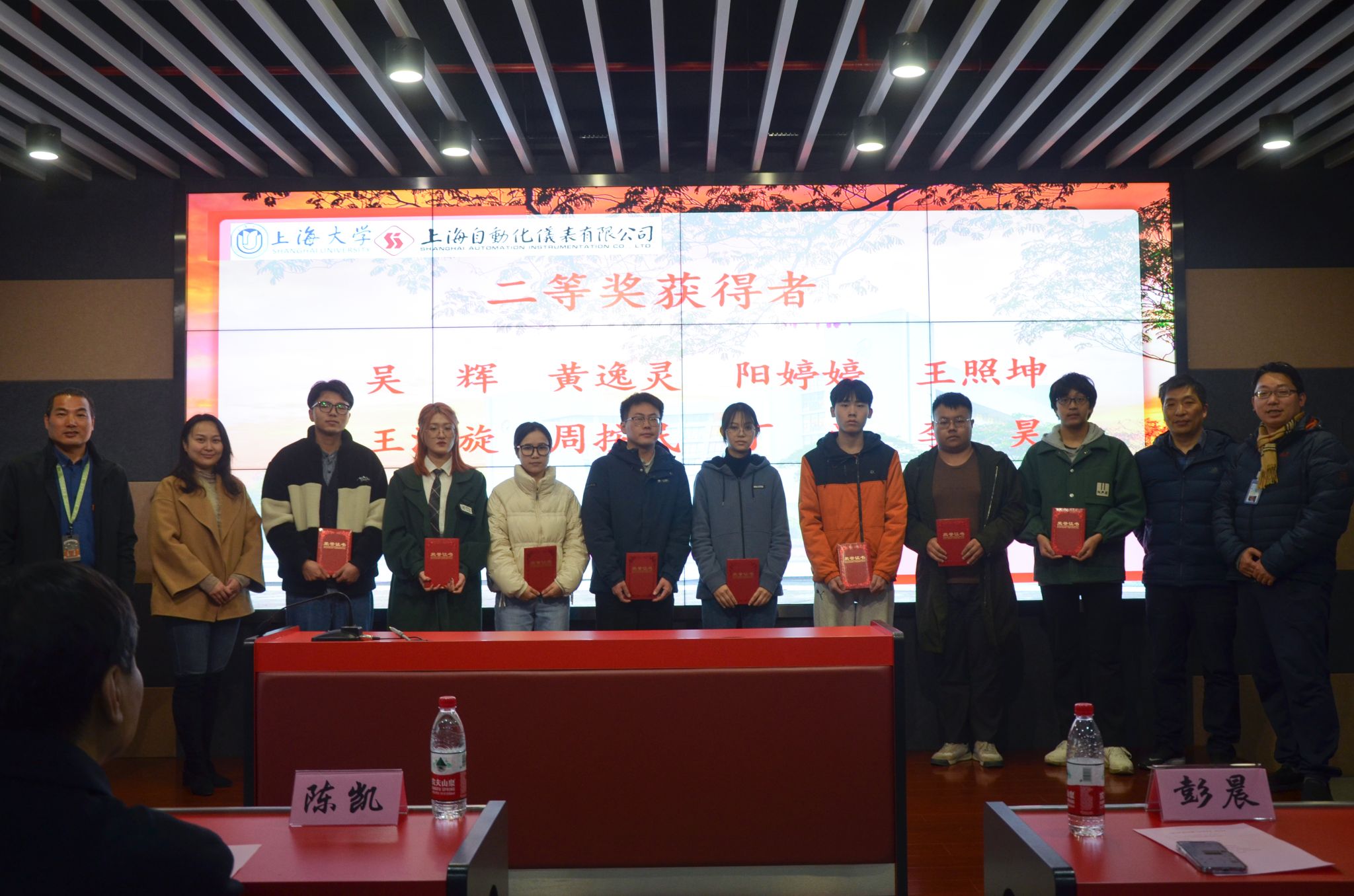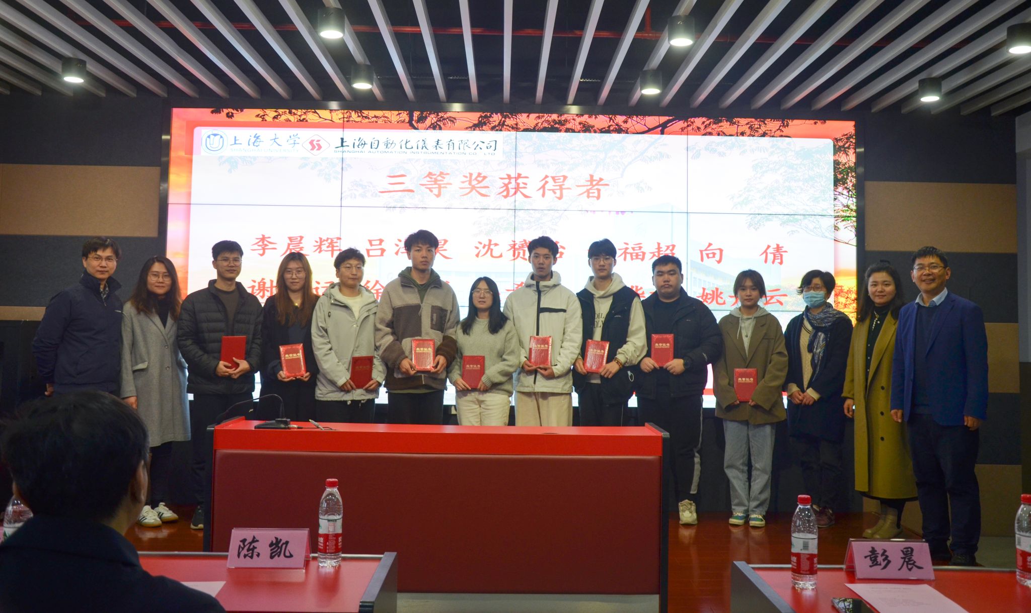 最后,王舒憬老师宣读了2022年度“自仪奖学金”获奖的24名研究生和本科生名单。由自仪公司领导和3044永利集团的与会院系领导共同为获奖员工颁发证书,并且与获奖员工合影留念。