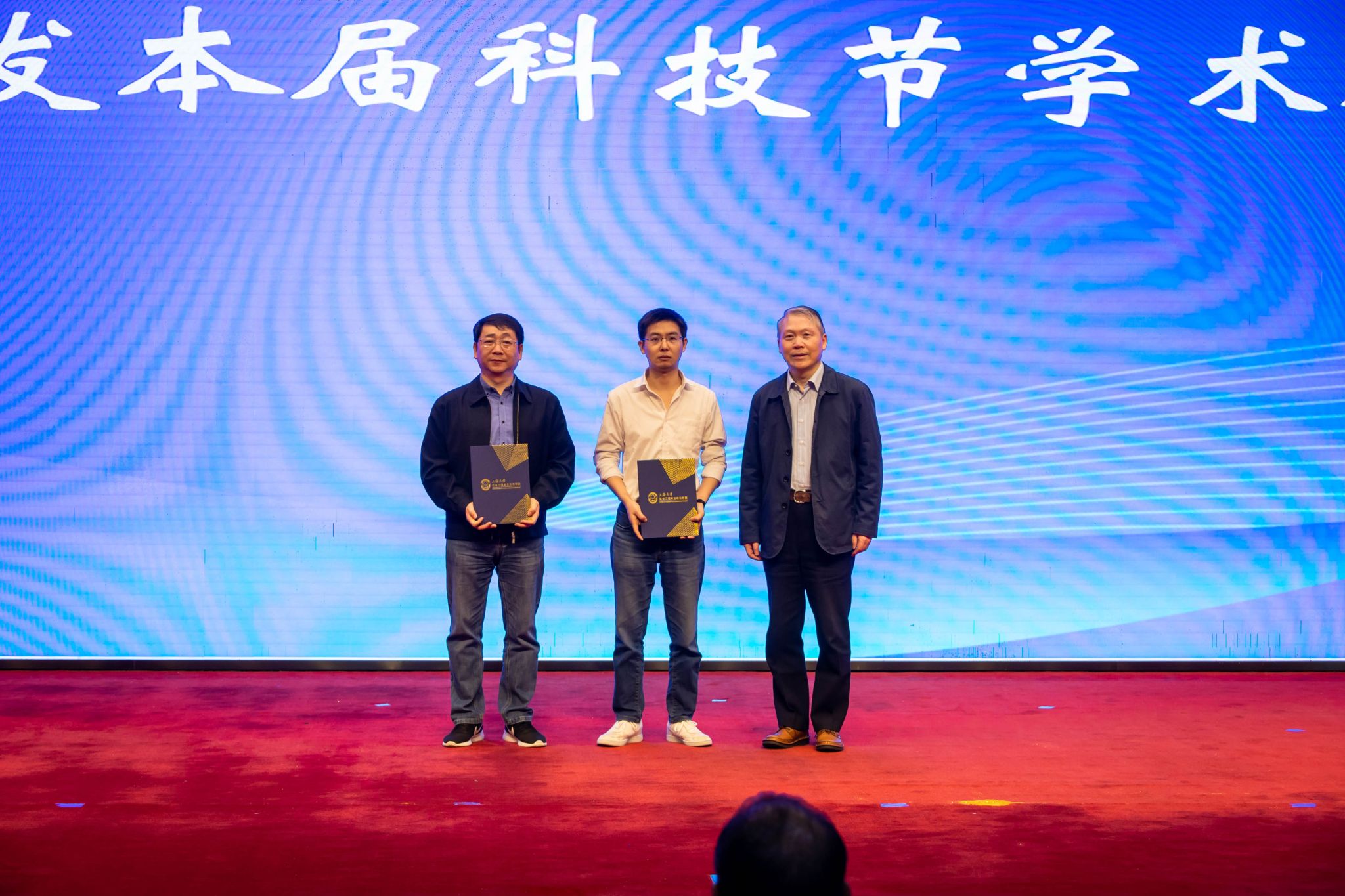 自强书院经理费敏锐为王立明、王炜、王兴兴三位嘉宾颁发本届科技节学术顾问聘书。