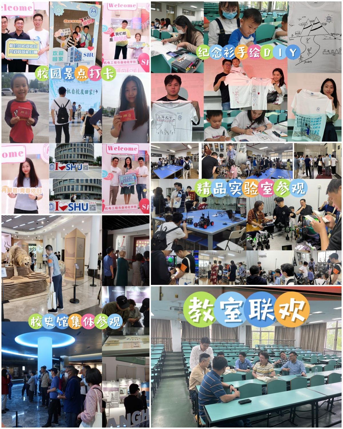 分场活动(一):通过纪念衫手绘DIY、机自精品实验室参观、校史馆集体参观、教室联欢、校园景点打卡等分场活动,让员工感受公司和公司近年来日新月异的变化,员工们深情感恩并纷纷赞叹“回家真的很温暖!”。