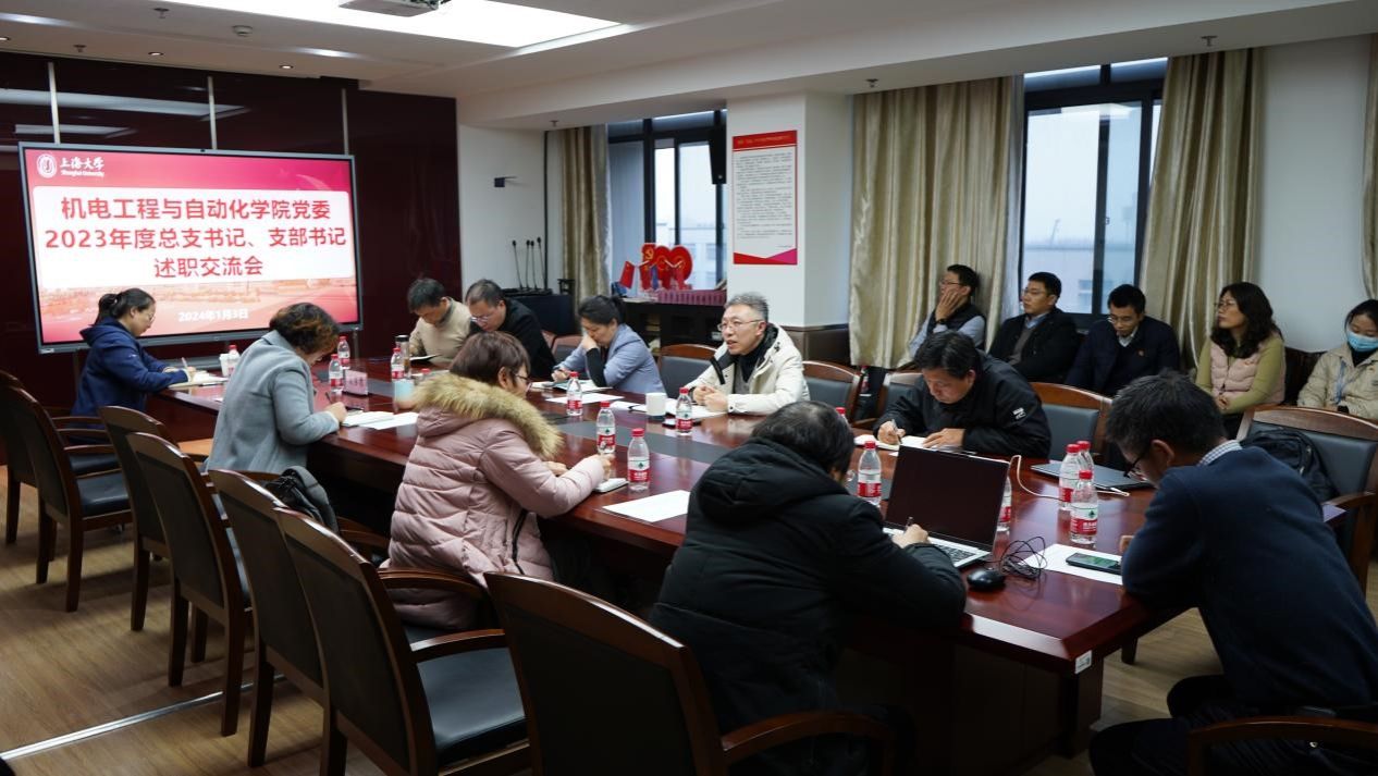 首先,仇静豪老师介绍了本年度支部书记述职要求。随后,公司4个总支书记、17个教工党支部书记、8个研究生总支书记、5个本科生党支部书记,严格按照公司、公司相关要求,就本支部2023年度党建工作情况、存在问题及下一步工作打算等方面的内容依次进行现场述职交流。