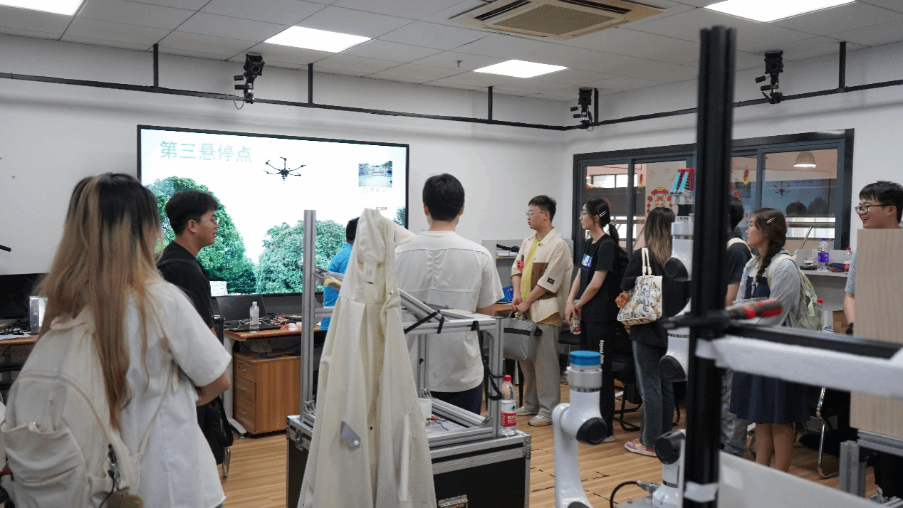 本次夏令营活动邀请到九个科研和人才培养团队与同学交流,以使同学们能更直观、深刻地了解老师的研究成果。张旭教授围绕大型部件机器人测量进行了交流,阐述了大型部件的行业背景和价值,介绍了机器人跨尺度测量的特点和难点。孙衍宁老师介绍了课题组对工业大数据、数字孪生与人工智能的前沿探索,以及在航空、航天、船舶、汽车、钢铁等制造业关键领域的应用成果。沈南燕教授介绍了深度学习、机器视觉、数字孪生等技术在机器人和工业母机方面的科研成果。解杨敏教授介绍了其研究组聚焦的无人系统智能感知与操控技术,特别是在三维非结构化环境中的通用多传感定位导航技术、高精度实景三维重构技术、异构无人集群协同侦察技术及大规模无人集群博弈技术等方向的研究成果。