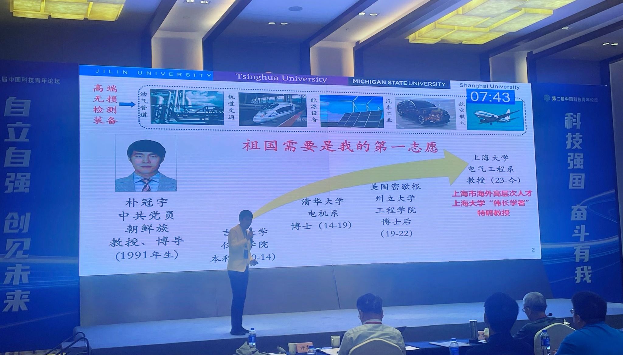 论坛上,朴冠宇教授发表了题为《打造高端无损检测装备,为我国工业安全把脉》的主题演讲,面向保障我国工业安全的重大需求,畅谈了将自身专业兴趣全部融入科研报国的信念和在无损检测领域顶天立地式科研攻关的经历,展示了成功研制的系列化高端无损检测装备成果,不仅为我国工业安全保驾护航,也获得了国际同行的认可,最后他对我国在“智能全周期”无损检测的前沿探索研究与引领产学研用的“红色科研”等多方面提出了政策建议。