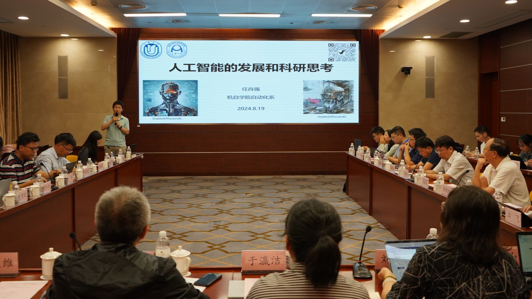 会上,任肖强教授作人工智能发展和科研思考的主题报告,介绍了现阶段常见的人工智能软件和平台,探讨与公司学科相关的未来应用场景和研究前景,并强调用人工智能等新一轮科技革命浪潮赋能公司发展的重要性。