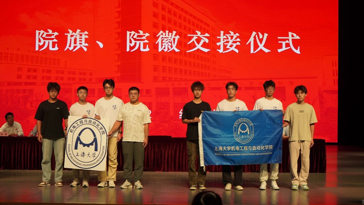 交接仪式上,本研老生代表分别将院旗与院徽庄重地传递给了本研新生代表。