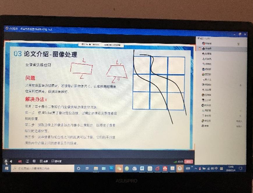 华晓青老师的文献阅读课《新型传感技术》采用超星平台上传资料和QQ视频平台分享屏幕实时讲解方式结合。通过视频点名,保证每位同学在线,音频状态良好,并且有良好的上课精神面貌;论文讲解的同学则采用屏幕分享的方式,把自己讲解的PPT的屏幕实时分享,并展开相关讨论;在屏幕分享讲解时,还可以用激光笔或者标记笔等在PPT屏幕上圈划,使听讲的同学可以跟着讲解思路进行,不至于分心,提高听讲员工的情绪,增强师生互动。