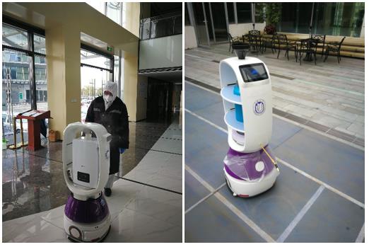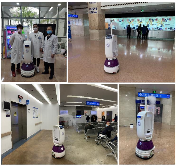 实施医院里现场部署时间不到15分钟,智能消毒机器人就已经能够背负超过20公斤消毒药水,每天可持续工作24小时不知疲倦地精确往返穿梭于发热门诊大厅、放射科、问诊台等重点区域服务。复杂环境与人群中轻松穿梭、诙谐的语音播报、一丝不苟的执行任务,智能消毒机器人一下成为大家信赖的好伙伴,医护人员纷纷为它安全、高效、精准、可控的消毒作业工作点赞,在为抗疫前线提供了先进消毒灭菌方式同时,萌宠的机器人也为前来问诊就诊的病人增添了一份轻松与科技护航的安全感!