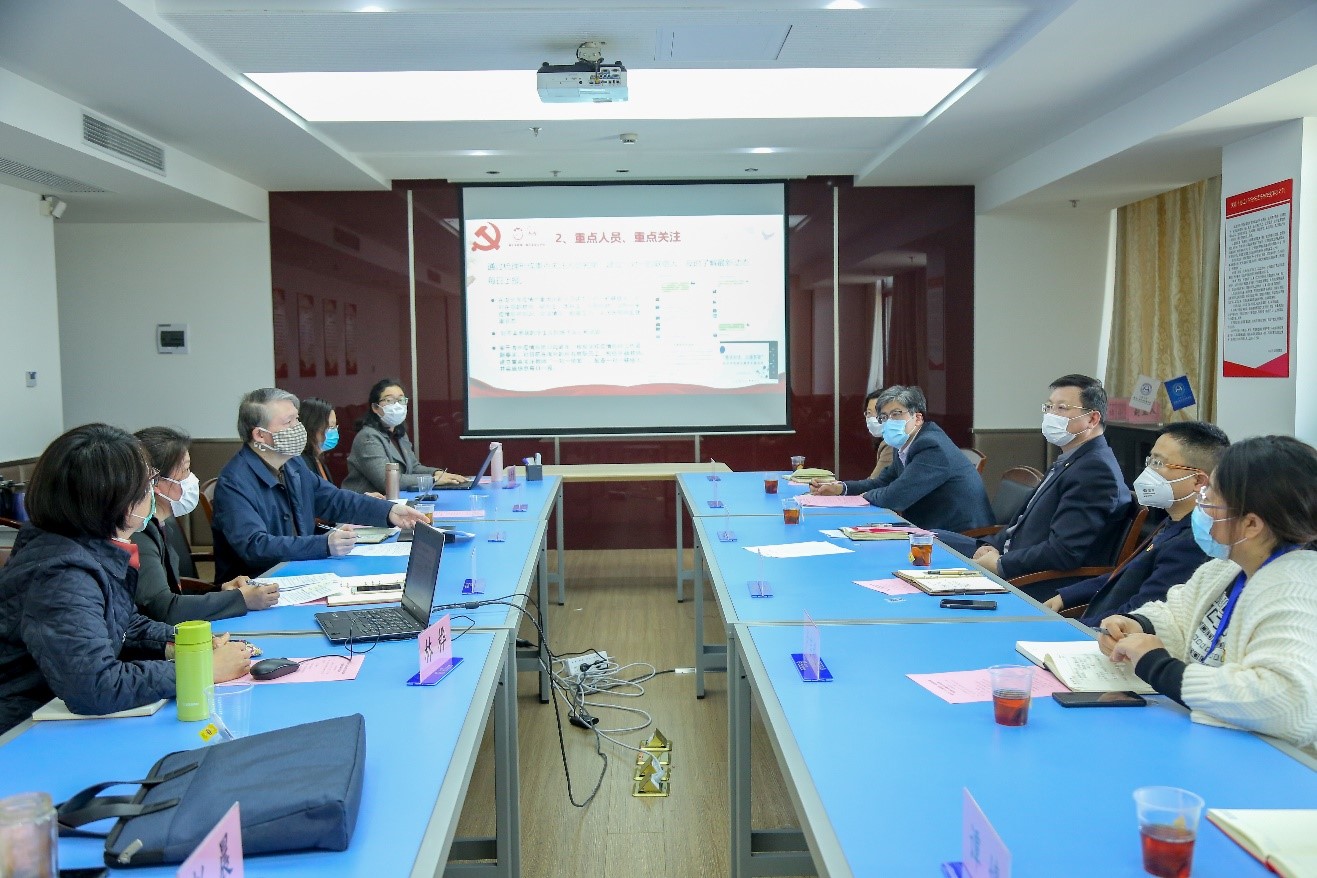 公司党委副书记林桦同志汇报公司新冠疫情防控工作开展情况,从公司总体布局、上下联动;重点人员重点关注;疫情中机自人勇挑重担,多项科研成果为抗击疫情做出了贡献;师生捐款捐物、支愿服务;疫情期间线上教学及德智体美劳全方位育人工作;全程做好疫情期间的宣传工作,以及后续按照新形势下疫情防控常态化的要求,做好师生返校准备工作。
