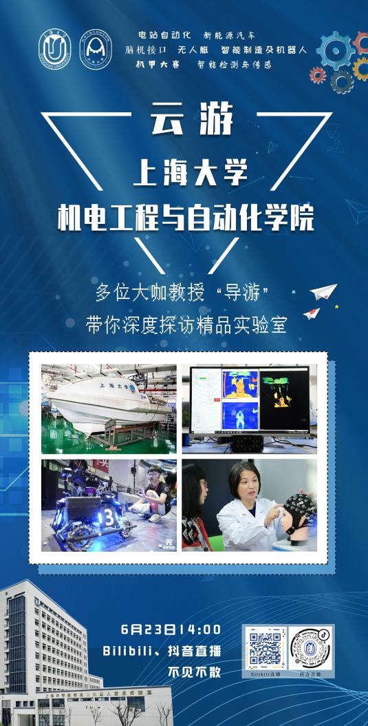 玩转炫酷科技,探秘高精智能。“云游上大”系列活动的第四季于6月23日下午2点在永利集团宝山校区东区机自大楼如期举办,永利集团官方B站直播间和抖音同步直播。观众们跟随镜头,一起在线探秘这幢大楼中的高精尖神秘“黑科技”。