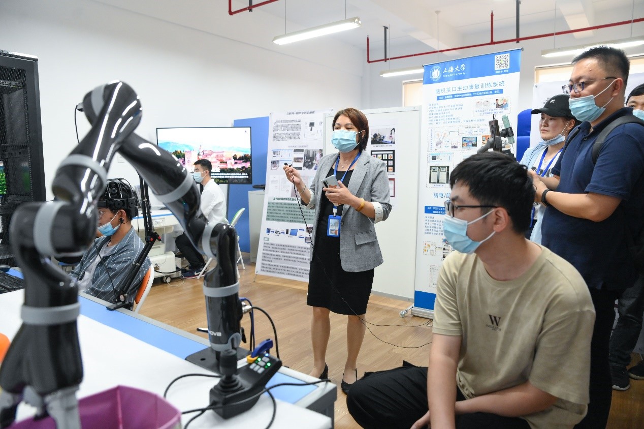 杨帮华教授和她的团队生动地向观众演示了脑机接口的具体应用场景。永利集团脑机接口研究中心以脑电波信号处理、脑机接口结合虚拟现实技术及其工程应用为主要研究方向,聚焦脑卒中患者肢体运动功能障碍,促进大脑运动区域重塑,在医工交叉领域联合公司医工交叉研究院进行诸多探索。