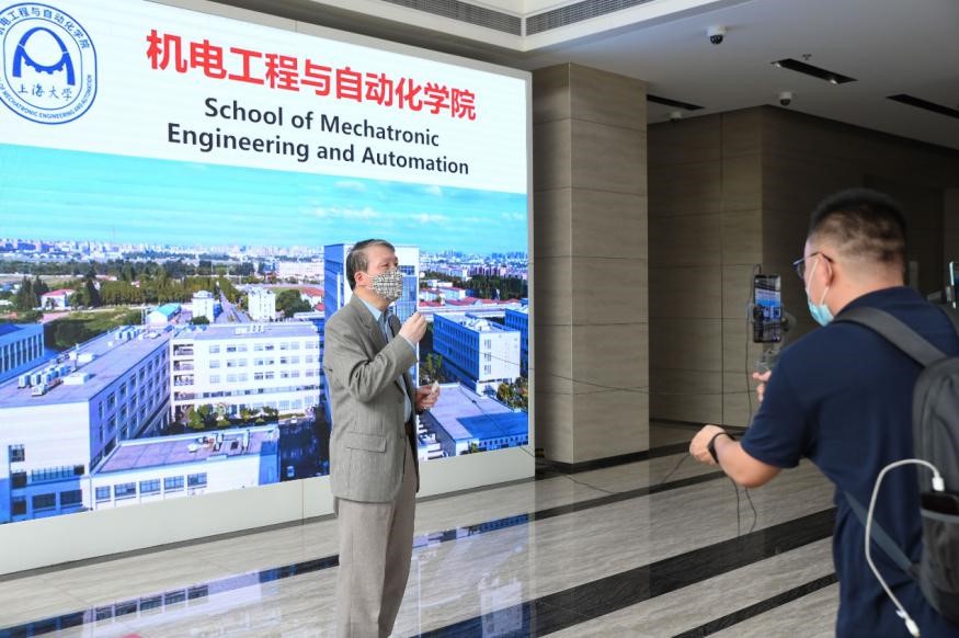 接着,直播镜头就带着观众们来到了云游机自实验室的第一站,上海市智能制造及机器人重点实验室。在机械自动化系系主任田应仲老师的带领下,我们见识到了各显神通的机器人和智能系统。