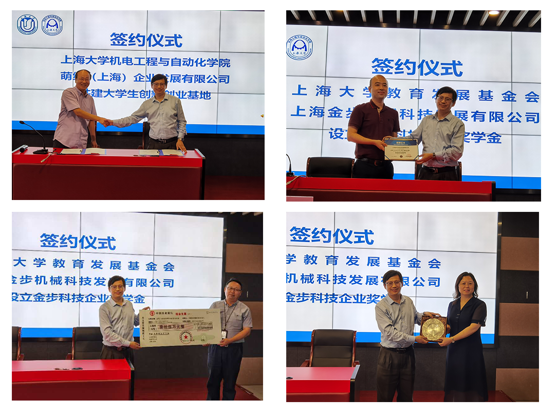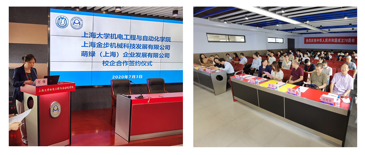 7月3日下午,永利集团3044中国区|3044永利集团-中国区|3044永利集团官方平台app——上海金步机械科技发展有限公司/萌绿(上海)企业发展有限公司校企合作及“金步科技”企业奖学金签约仪式在伯时会堂举行。金步机械科技发展有限公司/萌绿企业发展有限公司总经理金奇志、金步机械科技发展有限公司技术总监张晖、萌绿(上海)企业发展有限公司副总经理张欢、运营经理张国河、总经理助理梁露茜等来宾出席签约仪式,公司教育发展基金会副秘书长曹俊、公司党委书记于瀛洁、副经理刘丽兰、精密机械工程系系主任刘树林、测控教研室主任王志明、精机系学工党务主管马文静、院社会捐赠主管杨扬、精机系部分教师及员工代表参加了签约仪式,签约仪式由精密机械工程系系副主任刘梅主持。