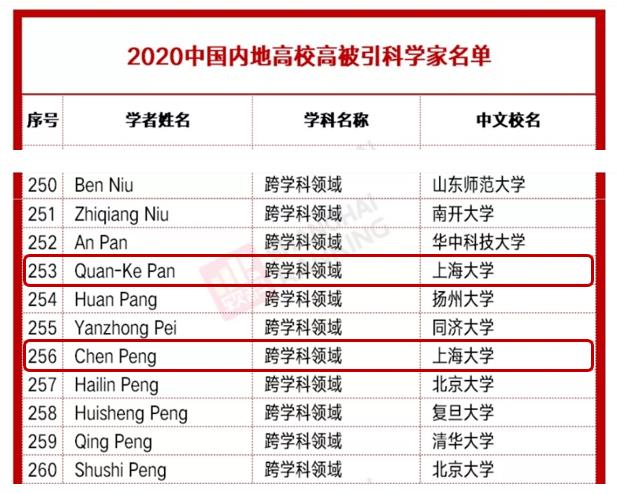 2020年永利集团共8位教授上榜,入选人次数量列内地高校第20位,上海高校第3位。公司彭晨教授、潘全科教授入选此次“高被引科学家”名单。