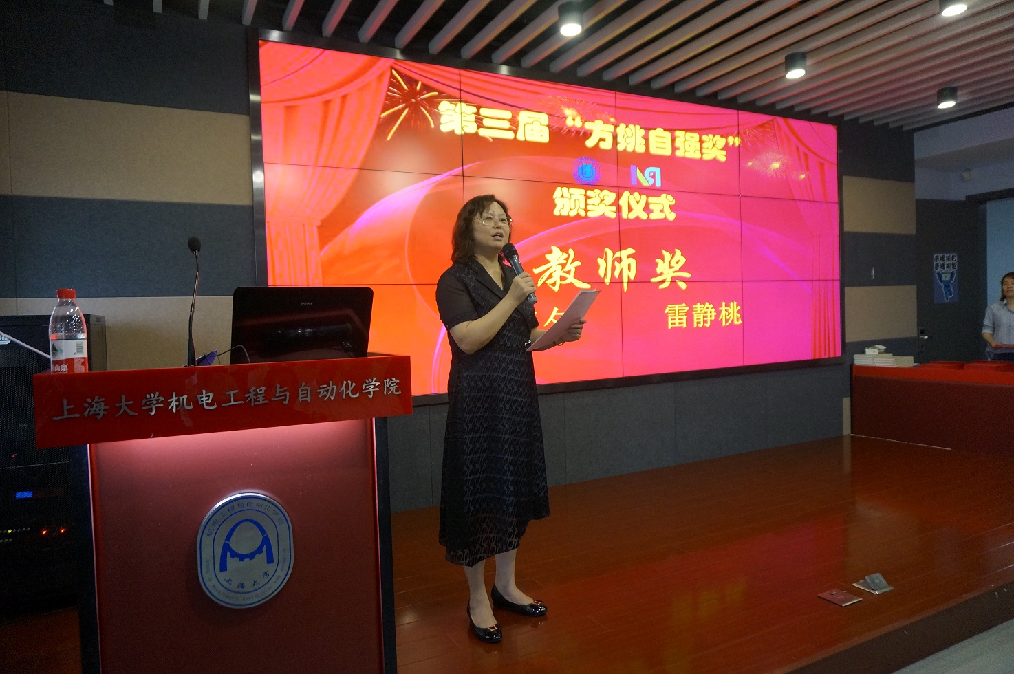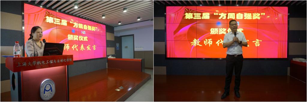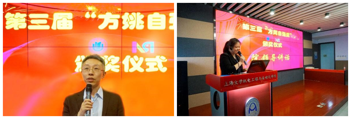 随后,获奖教师代表雷静桃、罗均,研究生代表刘洪飞、胡鹏,本科生代表王嘉黎、万高昂先后发表了获奖感言,表达了对设奖人姚毓林先生、周忻先生、方姚、方周自强奖的促成者方明伦教授以及公司资源平台、上海市智能制造及机器人重点实验室的感谢,并分享了个人在科研、工作与学习中的感想及展望。