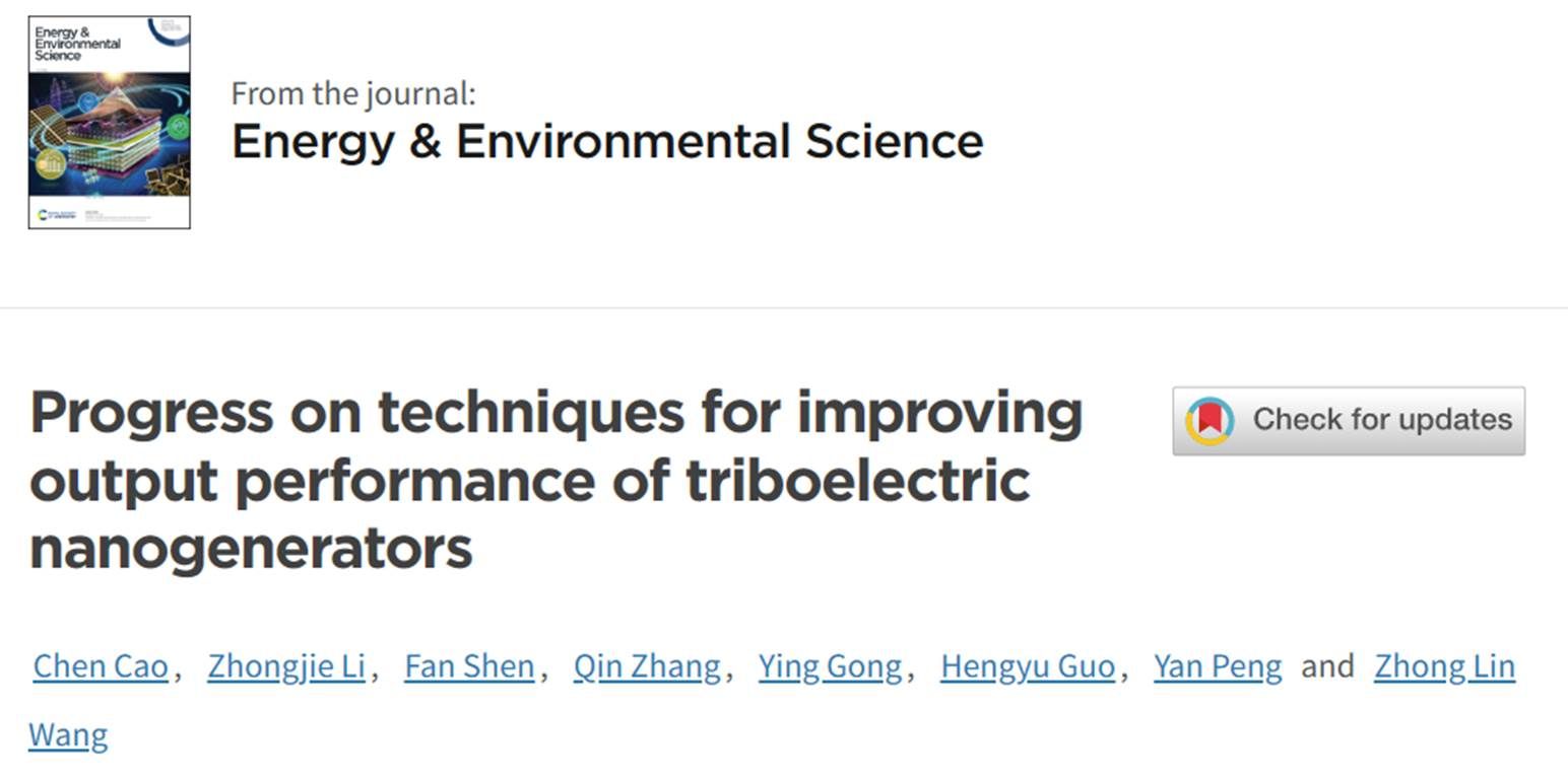 近日,公司李忠杰副研究员、彭艳教授课题组和中国科公司北京纳米能源与系统研究所王中林院士合作,在国际著名期刊《Energy & Environmental Science》(IF:32.5)上发表题为“Progress on techniques for improving output performance of triboelectric nanogenerators”的研究综述论文。