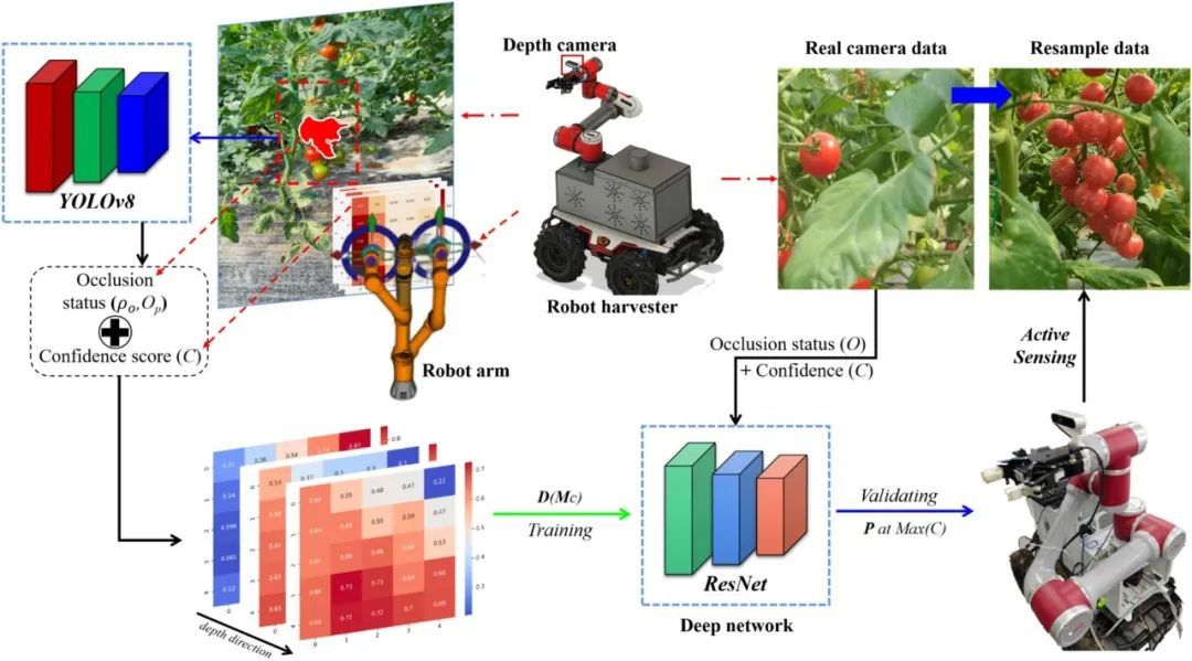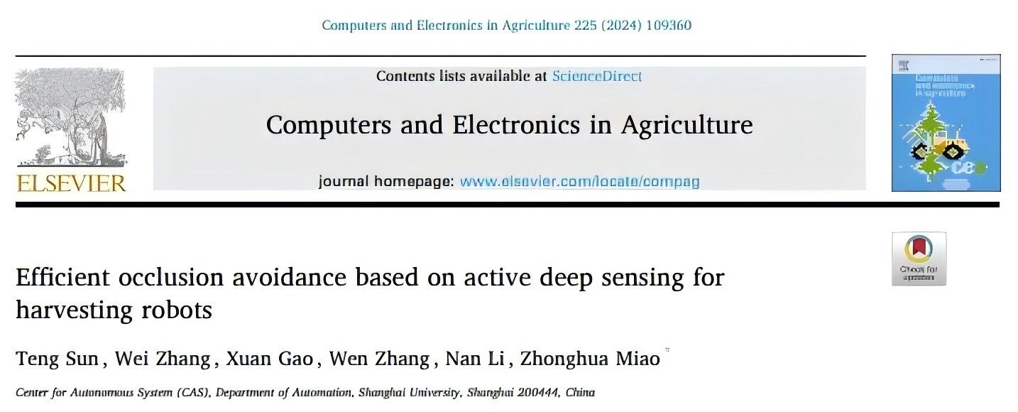 近日,3044永利集团苗中华教授团队在农业自动化领域国际著名期刊《Computers and Electronics in Agriculture》(中科院一区TOP期刊)上发表题为“Efficient occlusion avoidance based on active deep sensing for harvesting robots”的研究论文。
