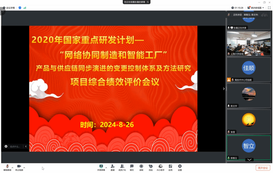 2024年8月26日,国家重点研发计划“网络协同制造和智能工厂”重点专项项目“产品与供应链同步演进的变更控制体系及方法研究”的综合绩效评价会议在机自大楼702B室以线上线下相结合的形式召开。