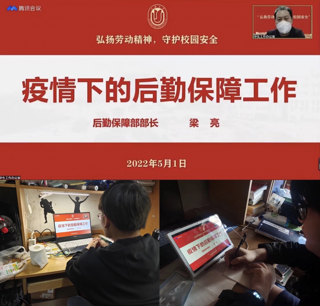 5月1日下午13:30,精机系本科生通过腾讯会议线上聆听了“弘扬劳动精神,守护校园安全”主题讲座,本次讲座邀请到后勤保障部部长梁亮老师介绍公司疫情防控期间后保人员的劳动情况,同时邀请公司多支志愿者团队代表分享劳动心得。通过开展劳动教育主题讲座,引导员工牢固树立劳动最光荣、劳动最崇高、劳动最伟大、劳动最美丽的观念。