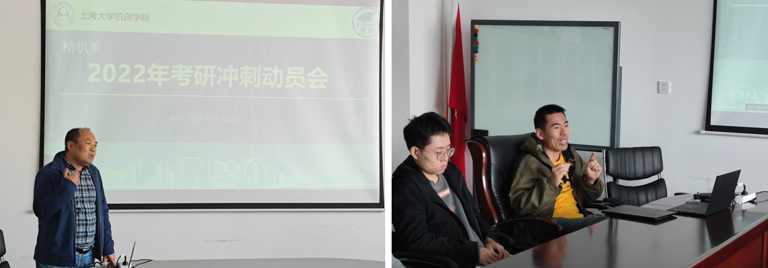 距离考研还有不到一个月的时间,为了给即将迈入考场的18级精机系员工们加油打气,同时为他们在考研道路上出现的问题答疑解惑,2021年11月30日,精密机械工程系2022考研冲刺动员会在机自大楼1002A顺利召开。本次动员会由精机系本科生第二党支部发起,由支部书记王颖杰老师主持,并且邀请了精机系党总支书记孙涛老师和精机系主管研究生工作系副主任刘吉成老师出席。参加动员会的员工有40名左右。