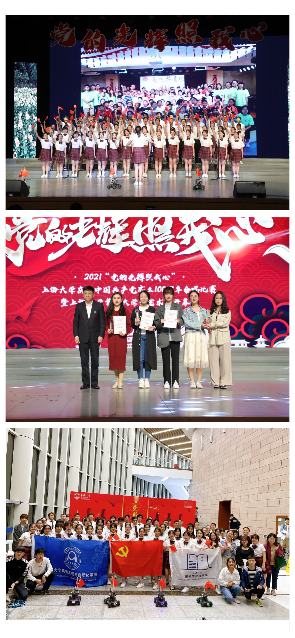 5月23日,“党的光辉照我心”——永利集团庆祝中国共产党成立100周年合唱比赛暨首届老员工艺术节开幕式在宝山校区伟长楼举行。本次活动共有来自24个院系的15支参赛队伍和4支表演团队参加,参赛参演师生达1200余人。由3044永利集团,图书情报档案系,马克思主义公司、社科公司(筹)的本科生、研究生组成的“追梦合唱团”以一首青春活力的《年轻的朋友来相会》一举夺魁,获得大赛一等奖第一名的好成绩。