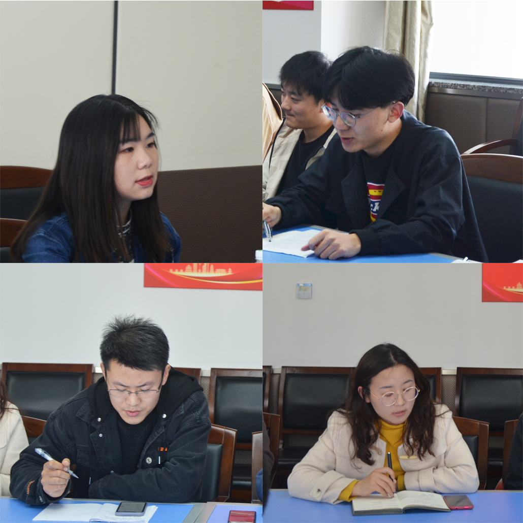 会上,王佳寅老师首先传达了校院两级关于党史学习教育动员会会议精神,部署了研究生党史学习教育安排,并进行了动员讲话。王老师强调要把党史学习教育与做好当前工作紧密结合,抓住时代浪潮与发展机遇,找准专业研究与国家发展需求的结合点,做出公司学科特色,同时鼓励党团研员工骨干发挥榜样模范和带头作用,凸显青年人的使命和担当。