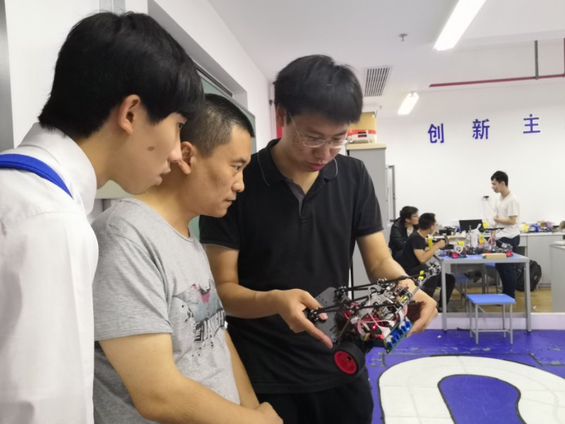 为了使考生和家长获得更好的参观体验,自强队的队员进行了很多前期准备工作,还特地安排了多次场景彩排。当天,自强队老师和员工很早就到达实验室准备接待考生及家长。黄老师和公司招生办配备的两名志愿者在阳光下、机自大楼西侧的马路边等候考生和家长的到来。