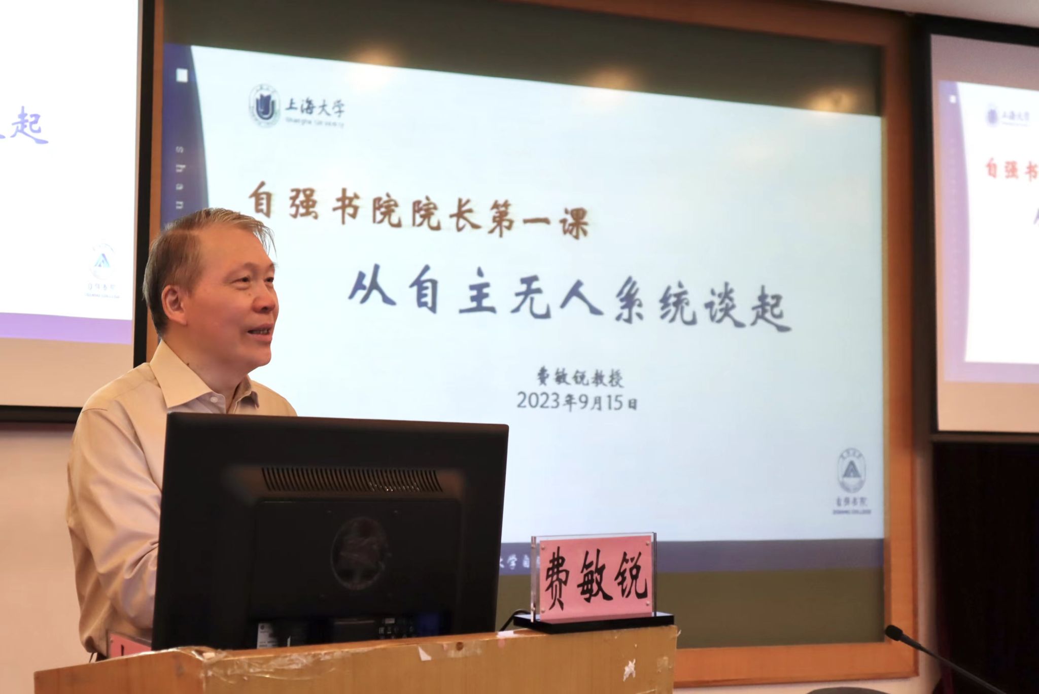 接着,自强书院经理费敏锐开展了《从自主无人系统谈起》的主题讲座。从无人机到无人驾驶,从无人机系统的威胁到无人系统涉及的支撑技术,费经理深入浅出地讲述科研知识与现实应用,并拓展到同学们需要具备的学科素养和知识结构。费经理以其自身的求学、教书、科研的经历激励同学们树立信心、积极进取,在求学之路上培养“诚信,勤奋,求实,创新”的坚实品格。