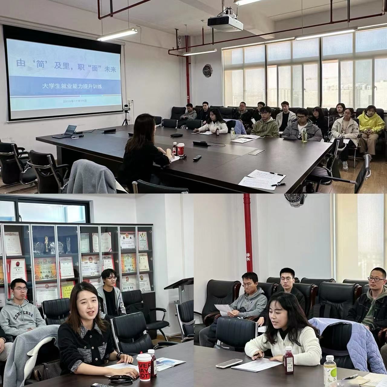 11月19日下午13:30,在宝山校区机自大楼1002会议室举行了《由“简”及里,职“面”未来——老员工就业能力提升训练》活动。本次活动由精机系本科生党支部、电气工程系本科生党支部联合发起,特别邀请到上海汽车集团股份有限公司乘用车分公司校园招聘HR杨美伊,零束科技有限公司校园招聘HR陈昭希,精机系党总支副书记马文静、电气工程系党总支副书记孟蓉出席本次活动。