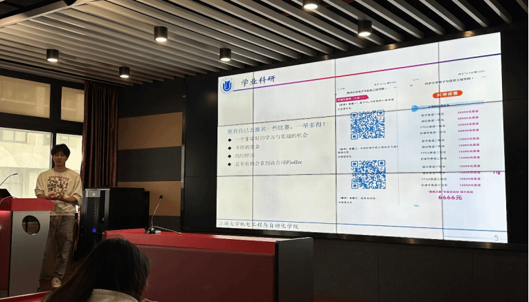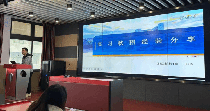 随后,精机1班班长寇阆与自动化2班班长陈岚昕也分享了自己在实习和秋招中积累的经验,并结合实际情况给出如何在科研、竞赛以及实习间的平衡方式。另外,他们与大家分享了求职中的信息搜集渠道、常见优质企业与对应招聘岗位,为同学们提供了专业方向最新的就业行情。此外,在如今竞争日渐激烈的就业环境下,两位学长也强调了科研竞赛能为个人简历带来的巨大加分,鼓励大家合理分配精力,适当参与竞赛。