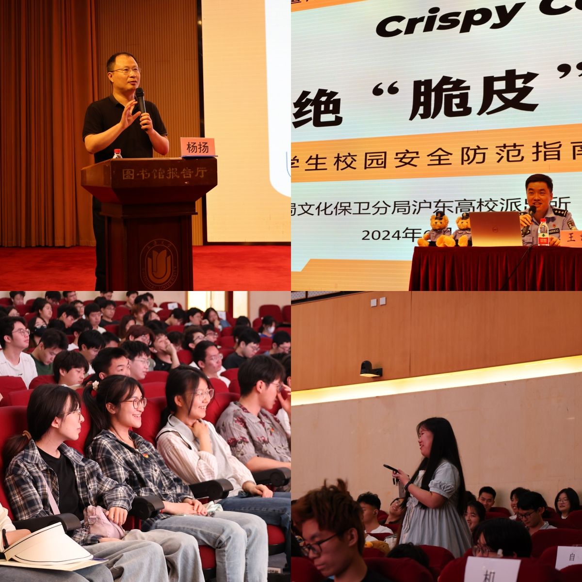 讲座邀请到了上海市公安局文化保卫分局沪东高校派出所副所长王韡,王副所长以《拒绝‘脆皮’—老员工校园安全防范指南》为题,采用大量真实案例,从交通安全、消防安全、网络安全、防盗防骗等方面进行了详细讲述,还向同学们传授了一些实用的法律法规和安全防范技巧。