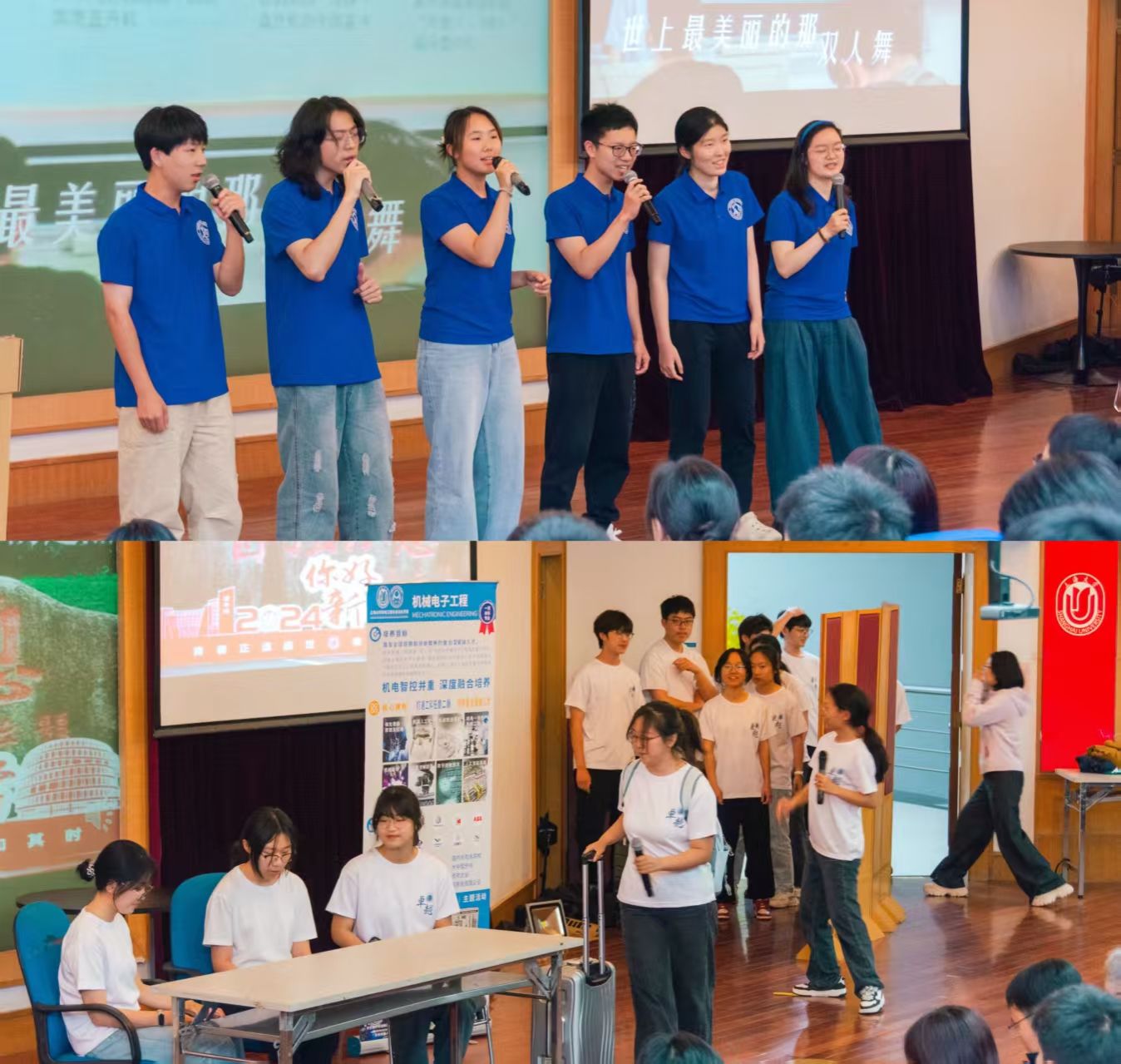 在班级风采展示的环节,本学年书院学风优秀示范班级的代表为大家呈现了无比精彩的演绎。2023级智能制造工程1班以热情点燃全场,献上活力合唱《Mojito》,展现了班级的青春与活力。2024级理工一类14班携手演绎舞台剧《青春合伙人》,诉说理工大类员工的追梦之路。