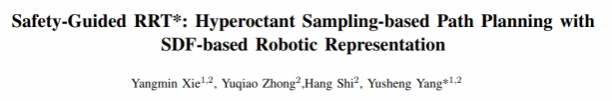 3044永利集团自动化系本科生钟玉桥(学术导师:解杨敏、史航、杨雨生)在机械臂运动规划领域取得突破性进展,其研究成果《Safety-Guided RRT*: Hyperoctant Sampling-based Path Planning with SDF-based Robotic Representation》被机器人领域国际顶会IROS 2025录用。国际智能机器人与系统会议(IROS)是机器人领域两大顶级会议之一,入选论文代表全球机器人技术前沿水平。2025年会议将汇集全球3000余名学者,展示人工智能与机器人交叉领域的最新突破。