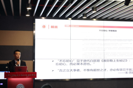 自动化系本科生党支部员工党员於鹏伟带来“不忘初心,不移其志”主题微党课。他阐释新时代青年响应祖国召唤的使命担当,并回顾了自己四年的成长历程,深情表达了对党组织辛勤培养的感激之情,於鹏伟将于今年9月赴甘肃支教。