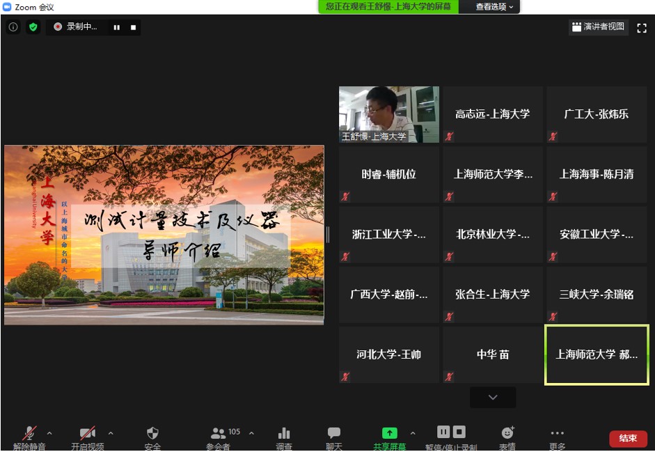 随后,王舒憬老师详细介绍了测试计量技术及仪器专业的历史、目前专注的各个研究方向,以及研究生奖学金情况、保研考研情况、毕业生就业情况。并详细介绍了目前学科招生的主要导师情况,以及夏令营的面试考核环节要求。最后苗中华教授邀请学员们在疫情结束后来校参观交流。