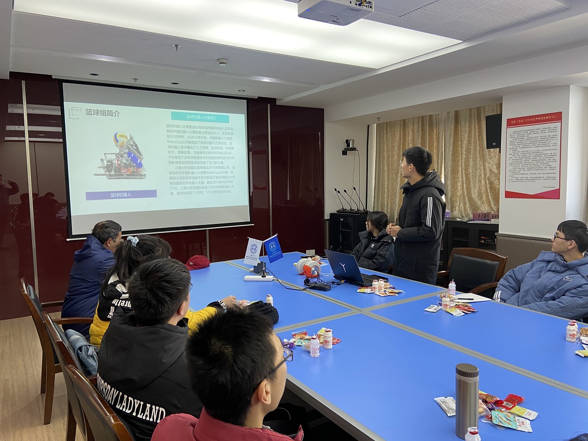接下来,自强队的四个组分享了各自的科创实践经历。来自研二的自强队党支部书记林城介绍了投篮机器人组所做的科创成果,展现了组员深厚的专业知识功底和出众的动手实践能力。同样来自研二的自强队员工负责人曾环宇向同学们普及了家庭服务机器人相关的专业技术知识,并介绍了本组多样化的比赛项目。组员们在比赛中敢于尝试新技术,勇于突破,大胆创新。智能车组负责人研二的孔德硕向大家展示了智能车比赛的魅力,组员团结一致,共克技术难关,多次取得优异成绩,从中收获良多。大三的家庭仿真组核心队员曹阅洋介绍了本组所涉及的软件知识,然后谈到参与其中,自己的编程能力得到快速提高。